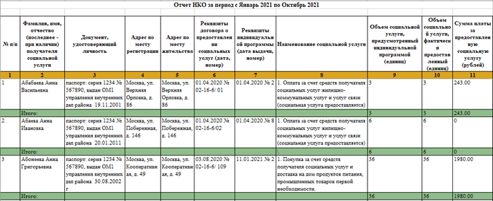 Отчет об оказании социальных услуг получателям социальных услуг можно формировать как ежемесячно, так и поквартально/за год. Отчет индивидуально дорабатывается чтобы соответствовать требованиям каждого региона!