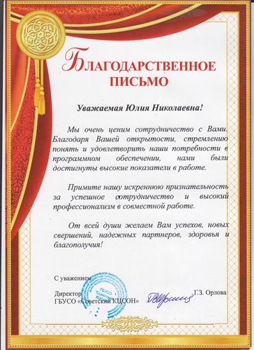 - Благодарственные письма ГБУСО "Грачевский КЦСОН", ГБУСО "Советский КЦСОН"