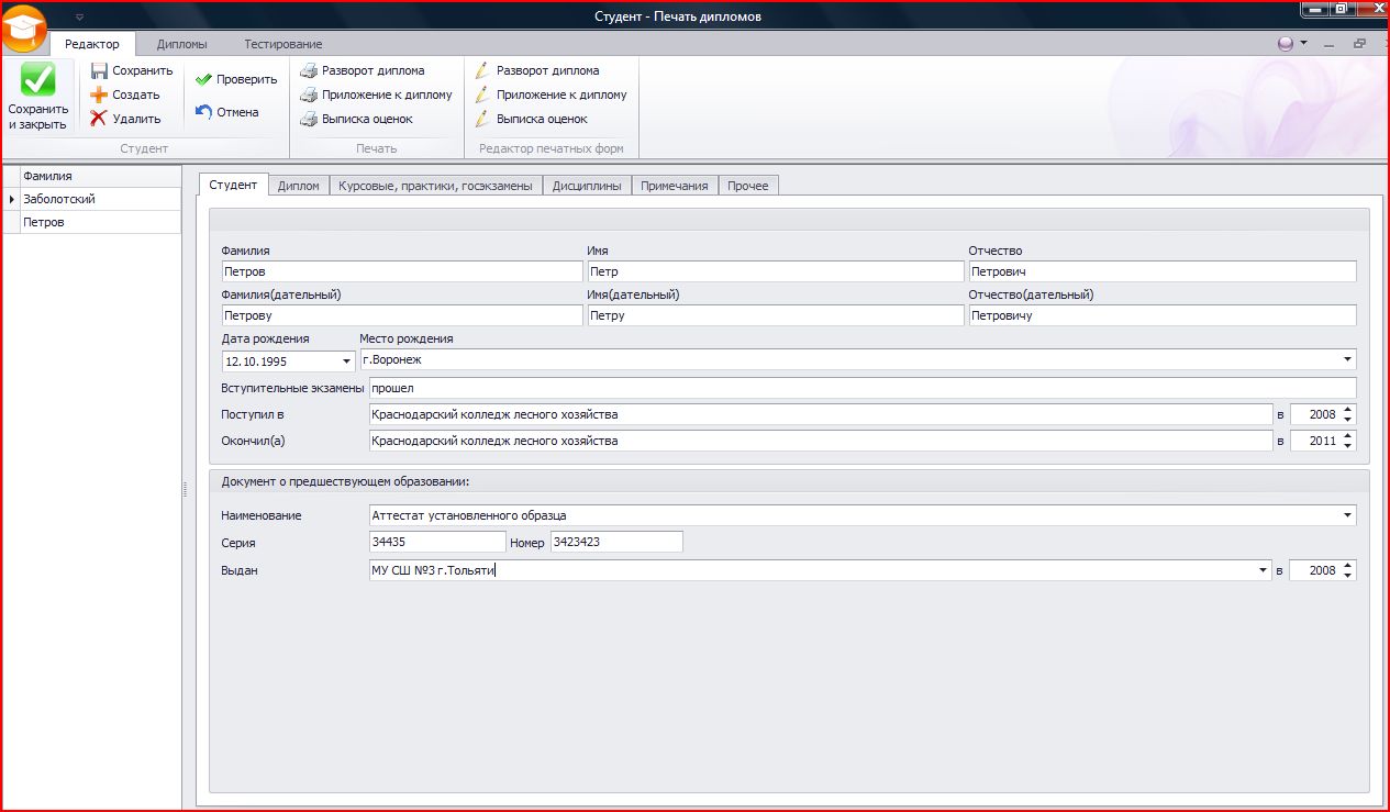 Программа «ТМ: ДИПЛОМ» СПО и НПО позволяет экономить время специалистов учебной части образовательных учречреждений при заполнении бланков дипломов. При этом сокращается количество ошибок заполнения, минимизируется ввод необходимых данных.