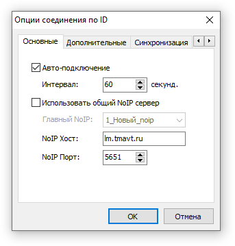 - Настроить приложение в соответствии со скриншотами (Автоподключение, NoIP хост lm.tmavt.ru, включена синхронизация):